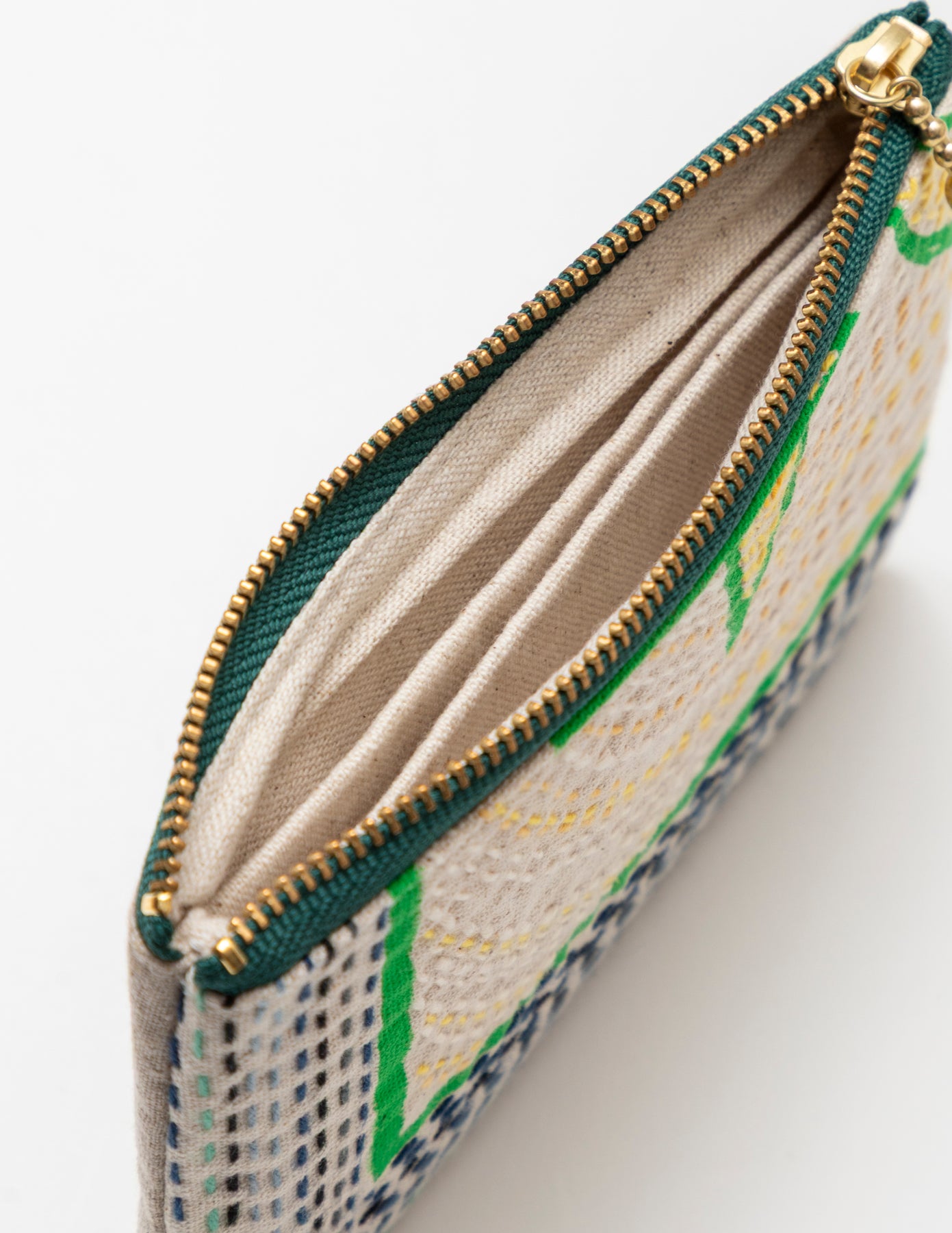 硬めの芯地を入れて型崩れしないように補強し、小銭とお札、カードの収納がしやすいように内側を三層に分けました。ヒップポケットに収まるコンパクトなサイズ感もこだわりです。